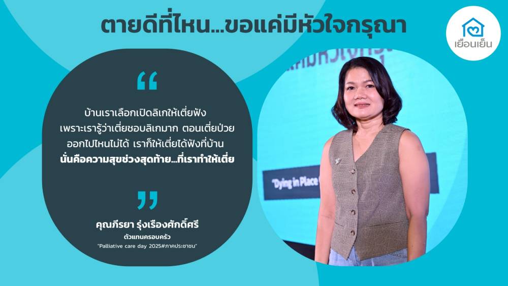 ขอขอบคุณภีรยา รุ่งเรืองศักดิ์ศรี ที่แบ่งปันประสบการณ์ในการดูแล ผู้ป่วย ที่เสียชีวิตที่โรงพยาบาล ในช่วงการเสวนา “ตายดีที่โรงพยาบาล” ในงาน “ Palliative Care Day 2025 #ภาคประชาชน เป็นอย่างสูง